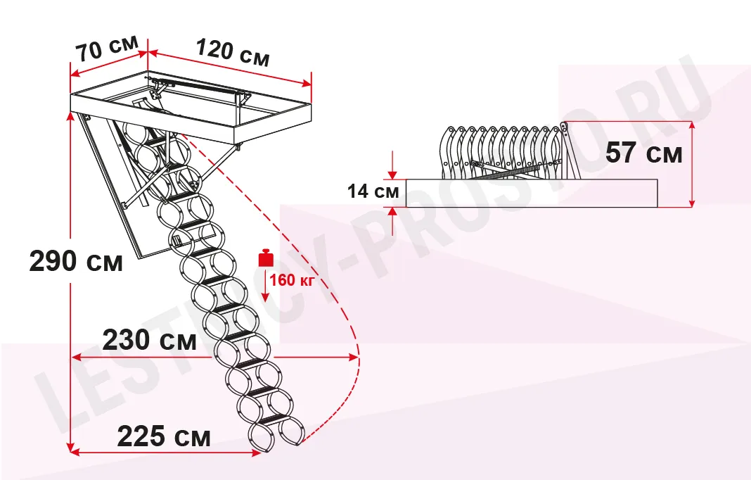 Чердачная лестница с люком OMAN NOZYCOWE TERMO 70х120 см, h-290 см