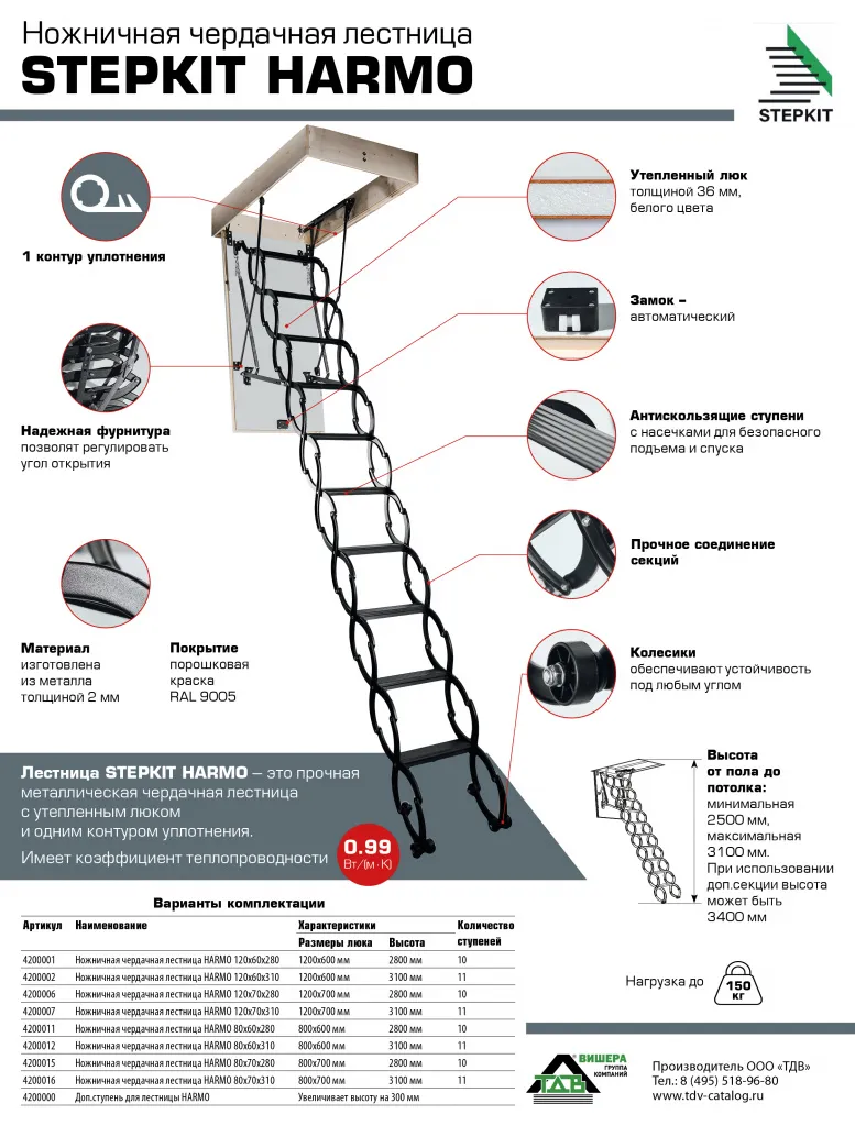 Автоматический замок: обеспечивает надежную фиксацию лестницы в сложенном положении.