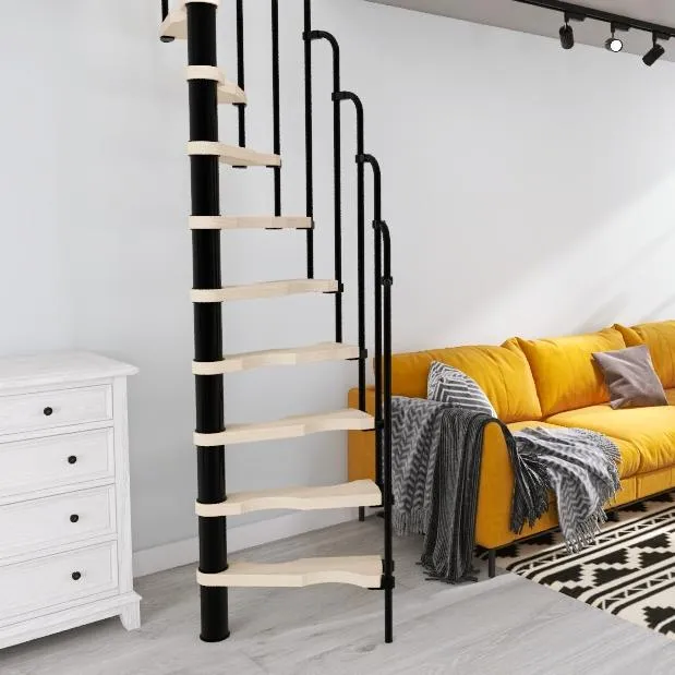 Удобная, компактная, винтовая лесенка идеально подойдет для небольших помещений. Ступени открыты за счет винтовой конструкции. Легко собирается и занимает небольшое пространство на первом и втором этаже. Монтаж осуществляется силами двух человек на объекте по указаниям, приведенным в паспорте на лестницу.