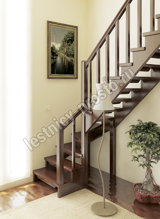 Деревянная межэтажная лестница ЛЕС-09 2900 проем 2580-900, Лиственница