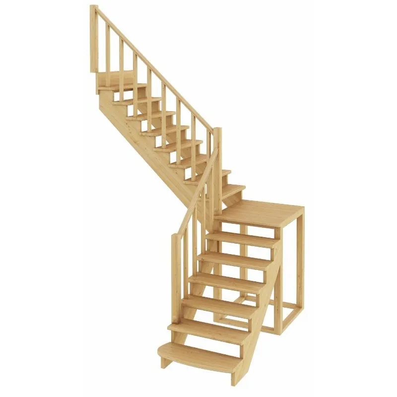 Ступени и поручень лестницы изготовлены из ясеня, остальные элементы из сосны.