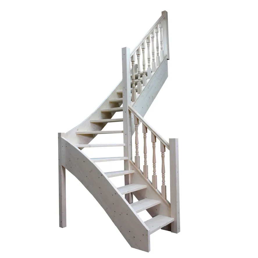 Базовый комплект включает в себя деревянные элементы лестницы и ограждения без какого-либо покрытия.