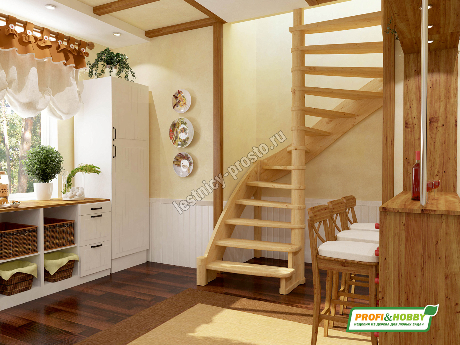 Базовый комплект включает в себя деревянные элементы лестницы без какого-либо покрытия.