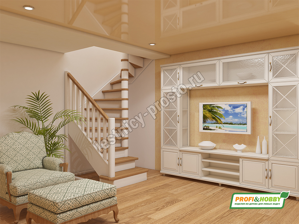 Ступени и поручень лестницы изготовлены из ясеня, остальные элементы из сосны.