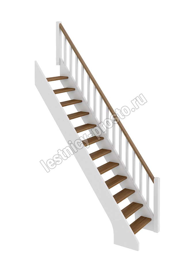 Базовый комплект включает в себя деревянные элементы лестницы и ограждения без какого-либо покрытия.