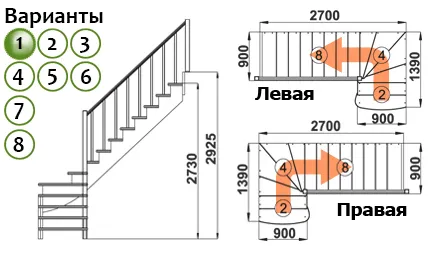 Схема лестницы К-001М/1 с поворотом налево