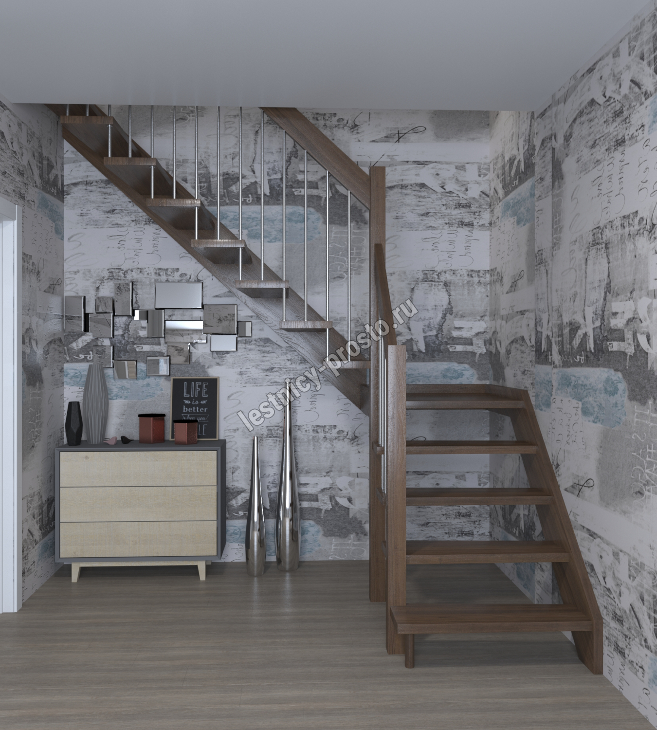 Лестница Prosto Console г-образная забежная сосна, h260 см