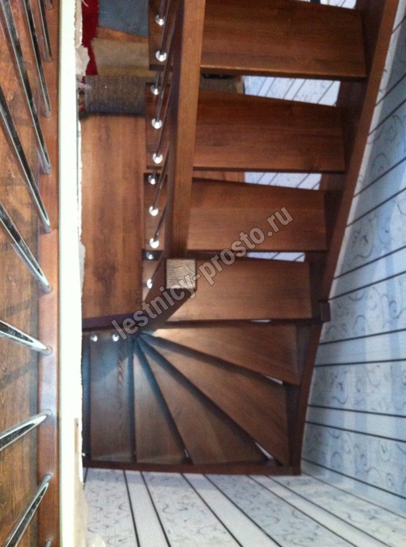 возможна комбинированная лестница: из сосны (ступени бук, ясень, дуб);
