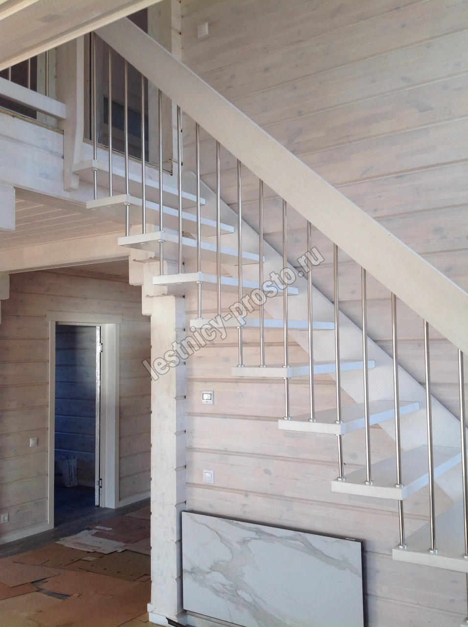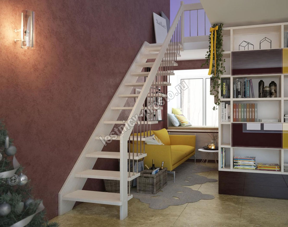 возможна комбинированная лестница: из сосны (ступени бук, ясень, дуб);