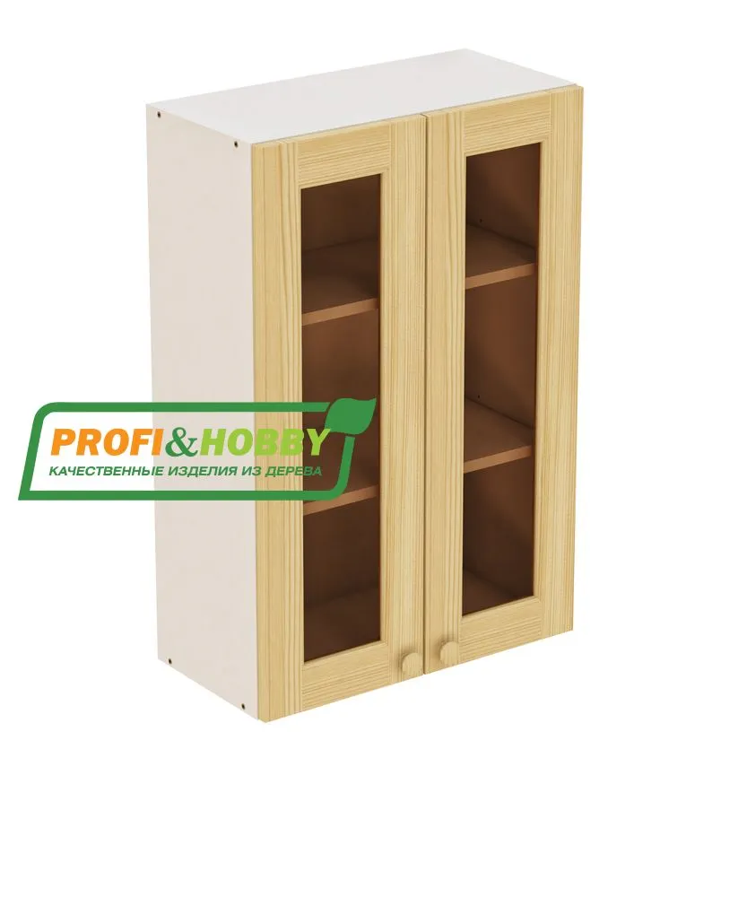 Шкаф навесной 2 двери 600х340х960 + фасад сосна под стекло бесцветный акриловый лак