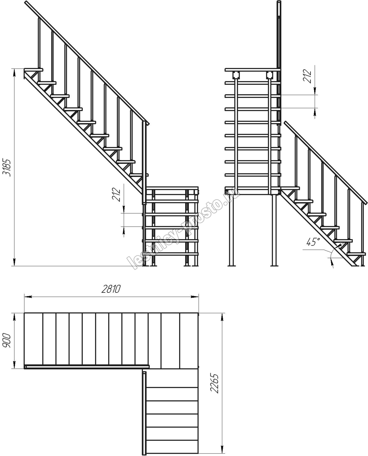 Высота лестницы 3185 мм