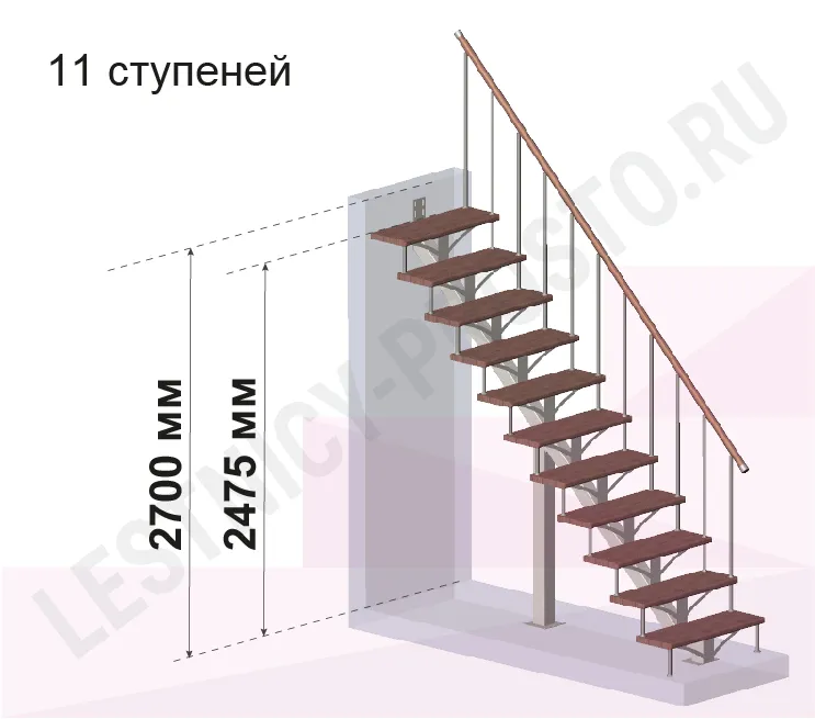Лестница PROSTO MONO прямая, h270 см, ступени хвоя |