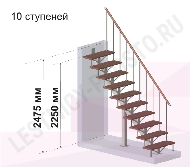 Лестница PROSTO MONO прямая, h225 см, ступени хвоя |
