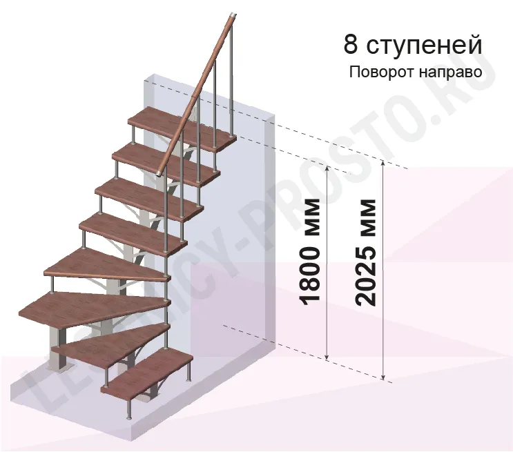 Высота лестницы 1800 - 2025 мм