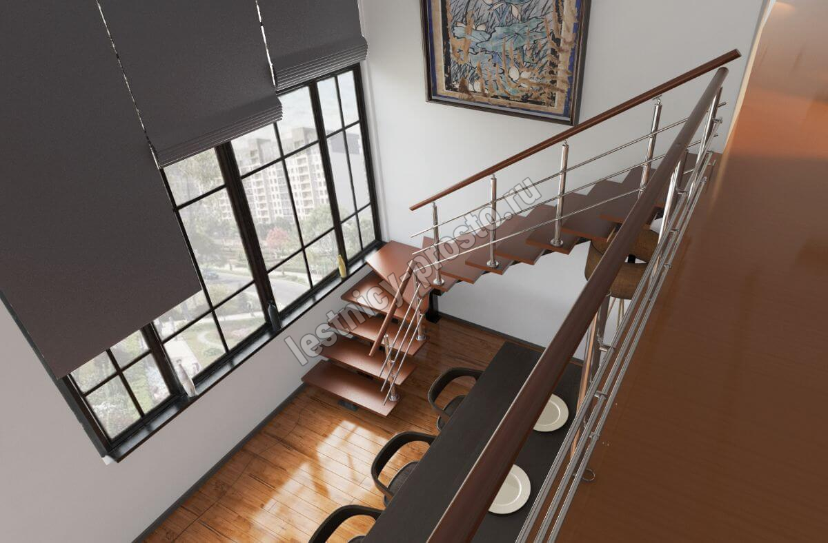 Лестница PROSTO MONO Г-образная h225 см, ступени хвоя