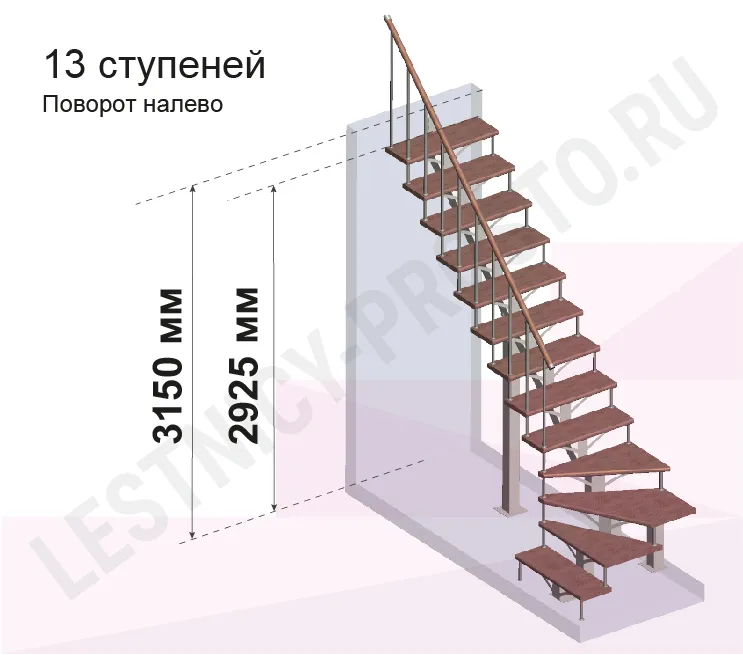 Лестница PROSTO MONO Г-образная h315 см, ступени лиственница