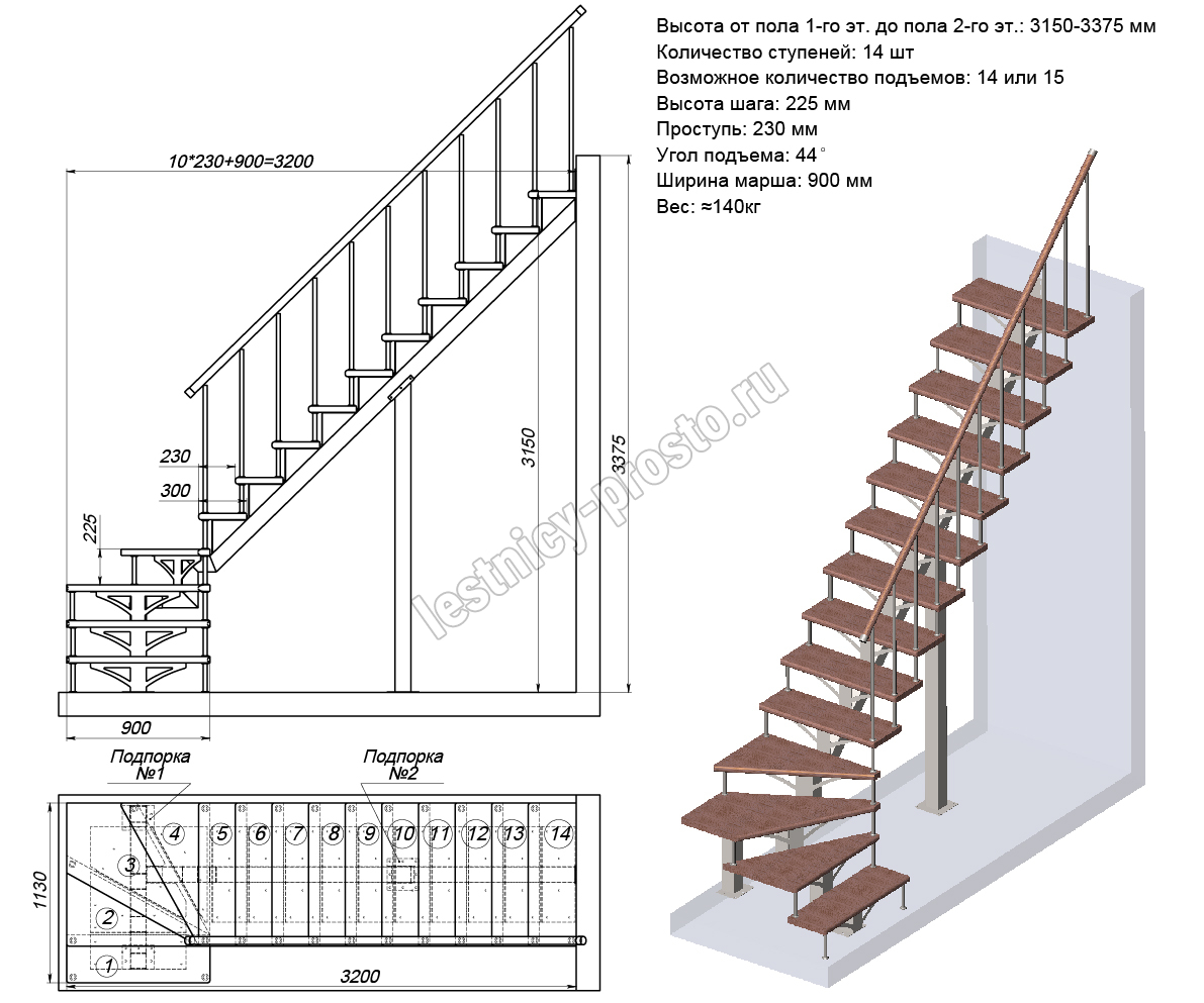 Стоимость указана для металлического каркаса и ступеней. Ограждение можно выбрать отдельно