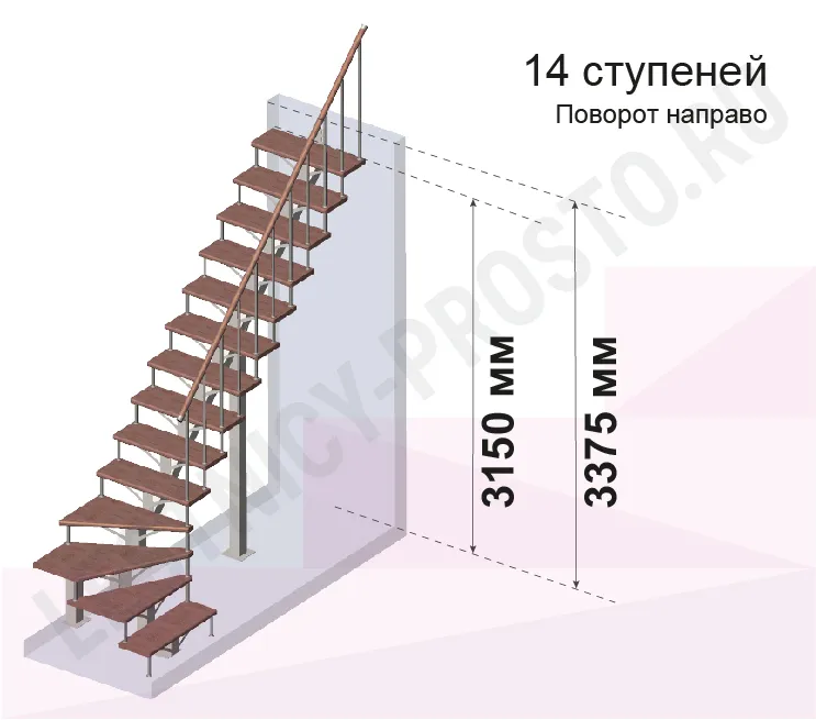 Лестница PROSTO MONO Г-образная h337.5 см, ступени лиственница
