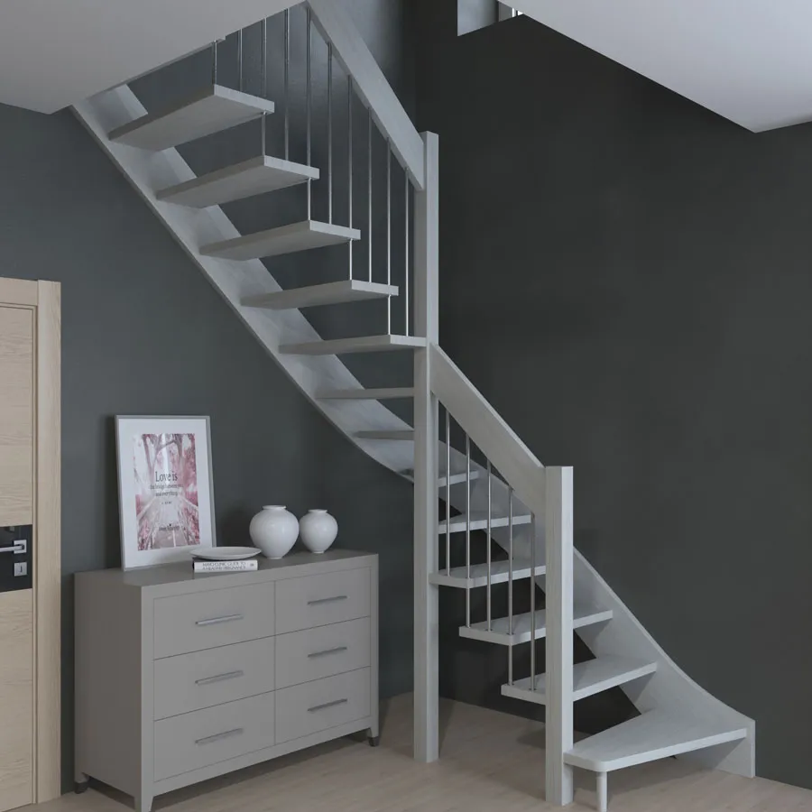 Поворот реализован посредством поворотных ступеней, высота поворота определяется параметрами вашего помещения и размерами проёма.