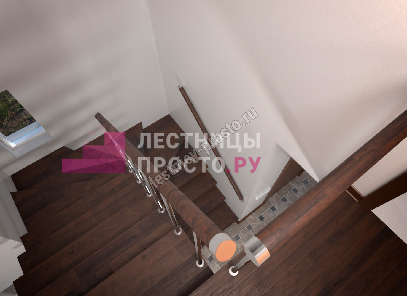 Поворот реализован посредством поворотных ступеней, высота поворота определяется параметрами вашего помещения и размерами проёма.