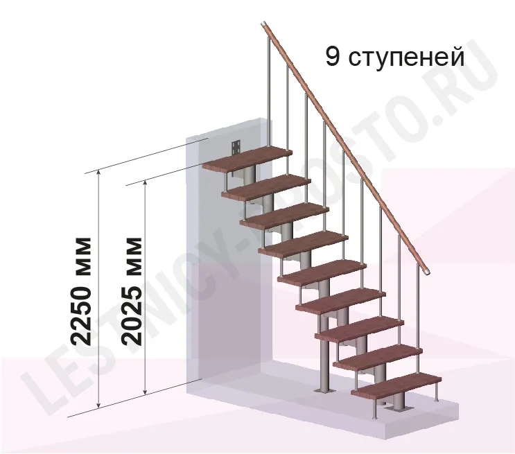 Высота лестницы 2025 - 2250 (9 ступеней) мм