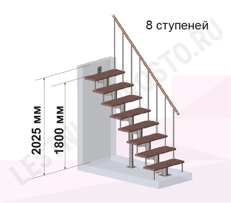 Высота лестницы 1800 - 2025 (8 ступеней) мм