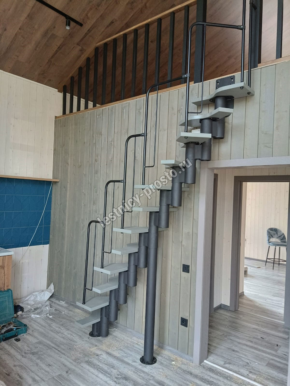 Лестница Prosto Urban Black гусиный шаг 700 мм, h234-336 см (13 ступеней), ясень