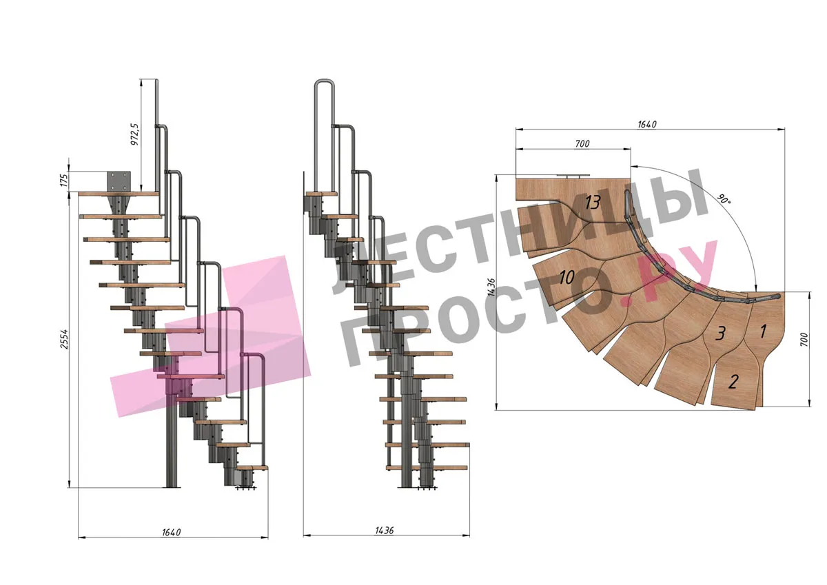 Высота лестницы 2340 - 3360 (13 ступеней) мм