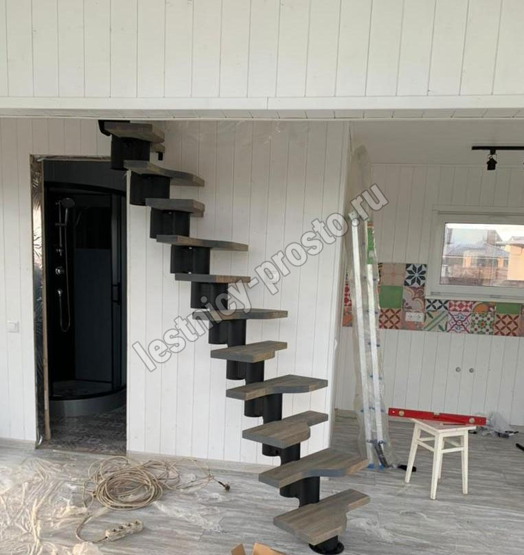 Лестница Prosto Urban Black гусиный шаг 600 мм, h198-288 см (11 ступеней), ясень