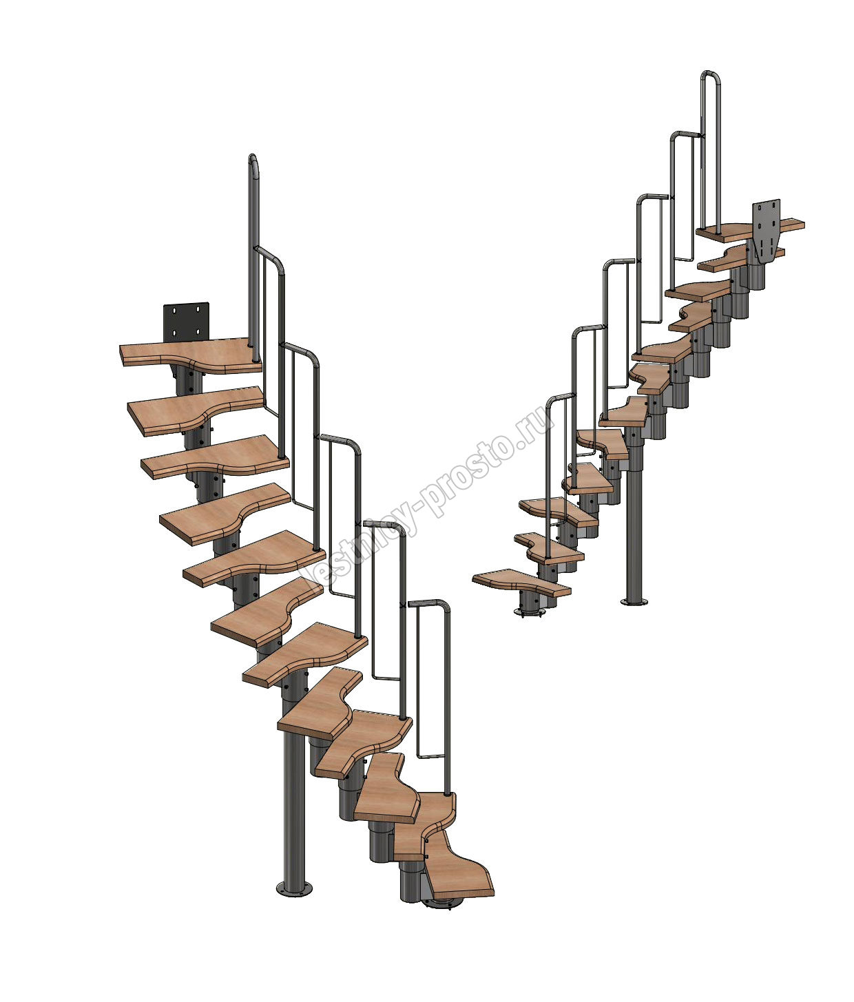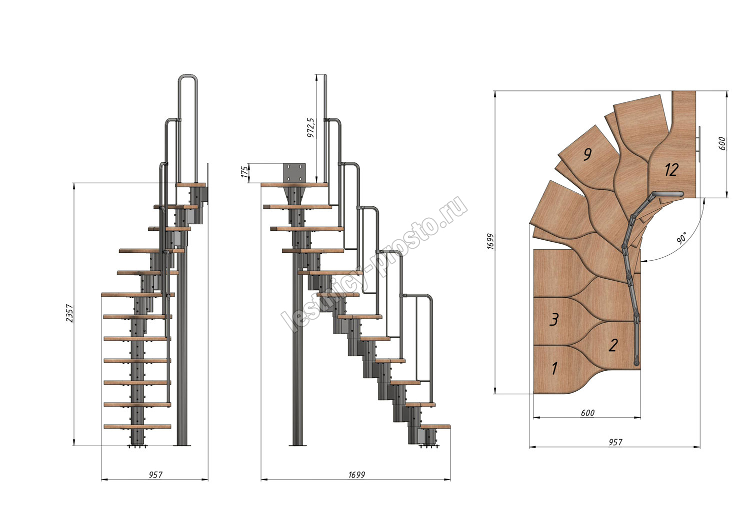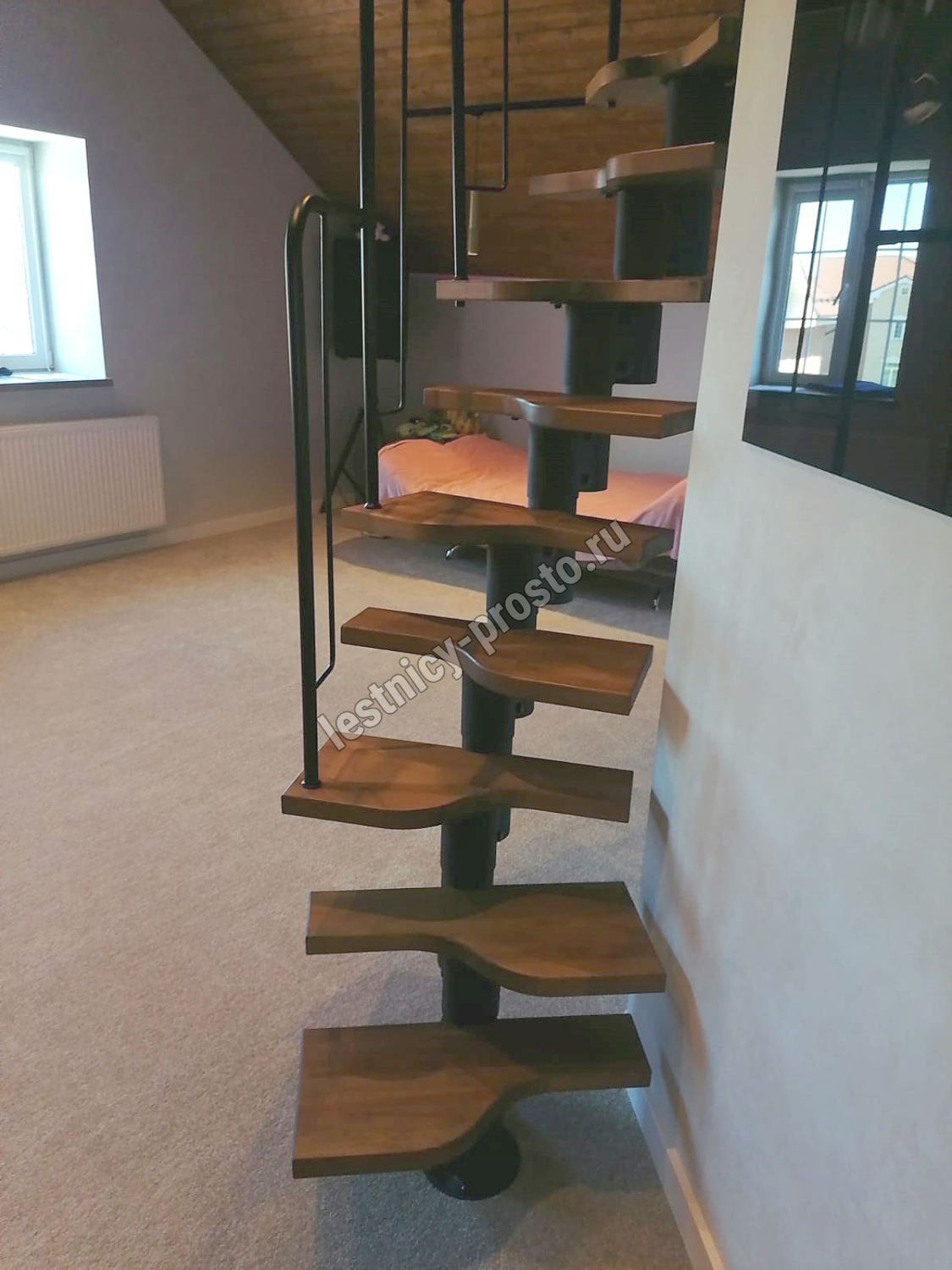 Лестница Prosto Urban Black гусиный шаг 600 мм, h216-312 см (12 ступеней), бук