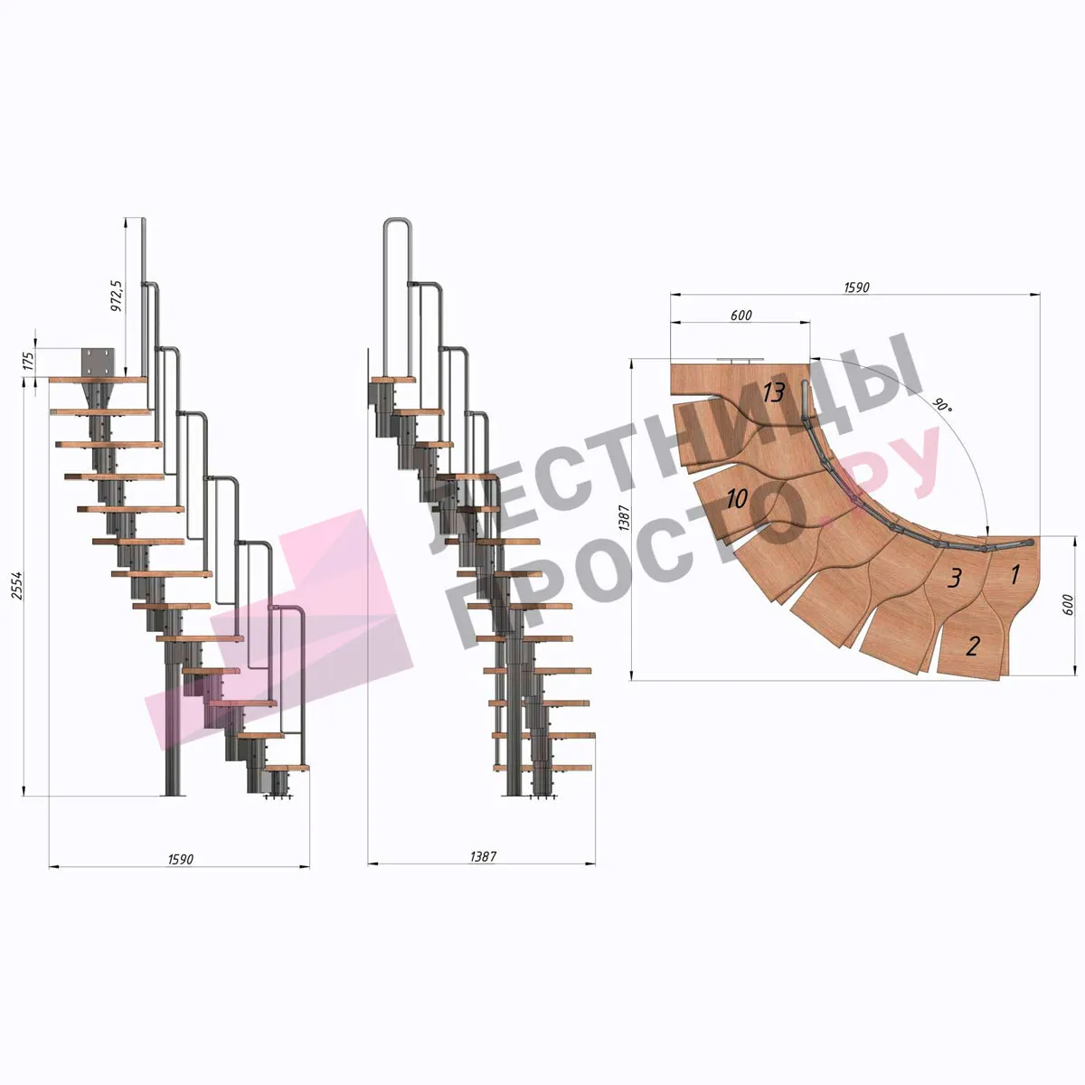 Высота лестницы 2340 - 3360 (13 ступеней) мм