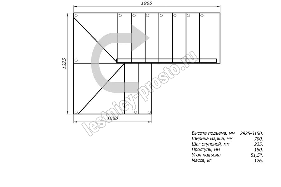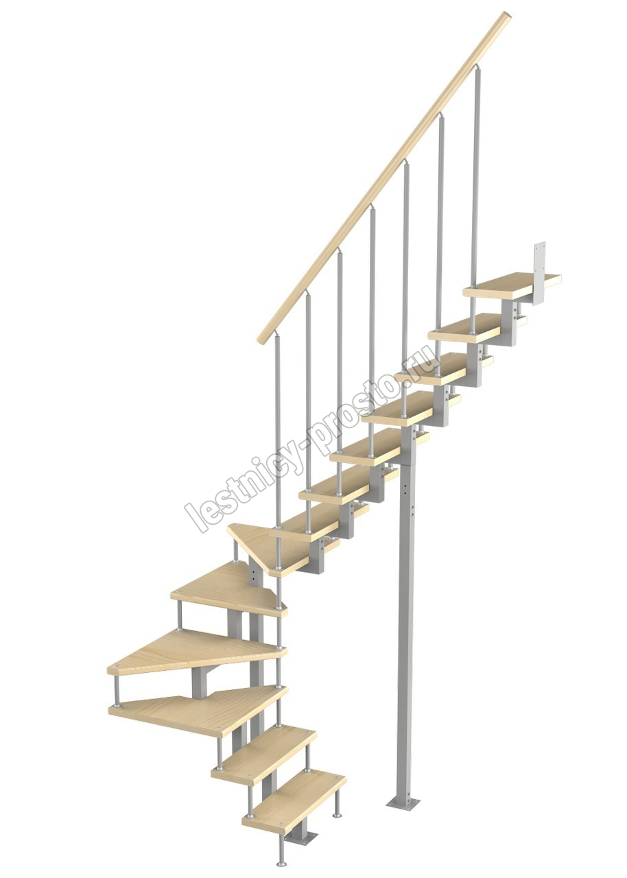 Модульная малогабаритная лестница Эксклюзив 2925-3150, Серый, Лиственница, Крашеная