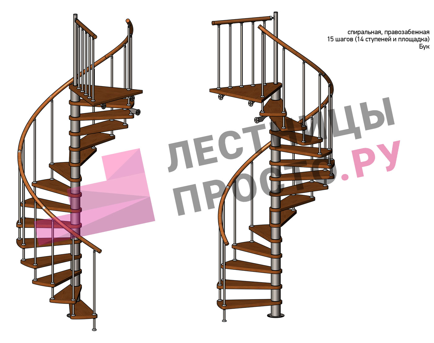 Ширина ступени между центральной колонной и поручнем ≈ 680 мм