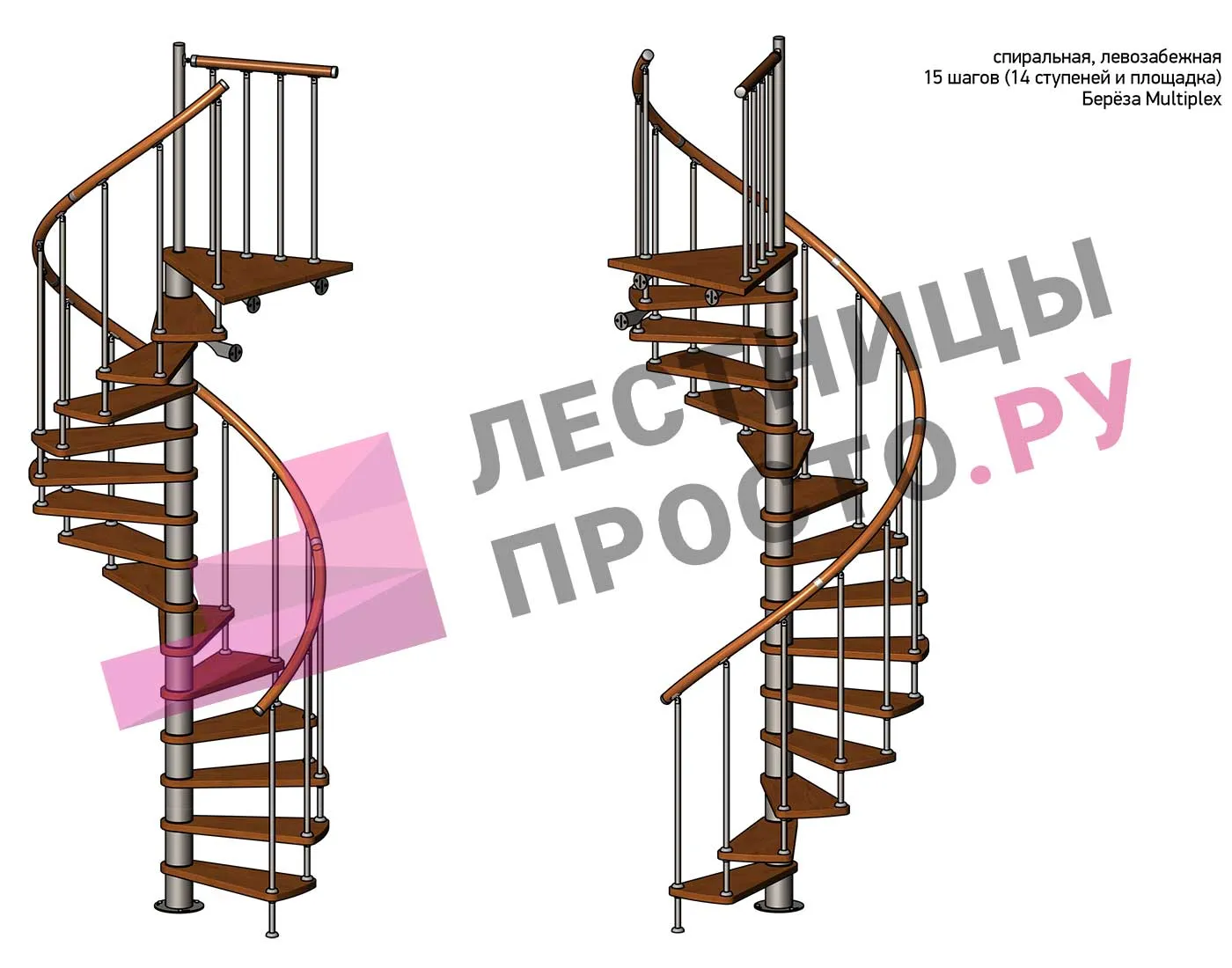 Винтовая лестница Prosto Spiral White D140см, h318.2-362.3 см