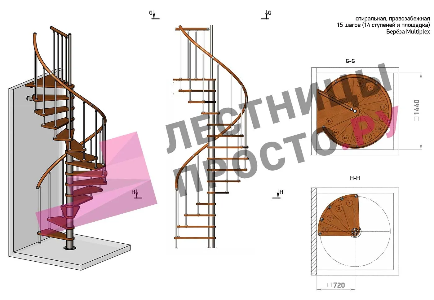 Решение об ориентации поворота принимается при сборке лестницы (комплект собирается и в правозабежную, и в левозабежную лестницу).