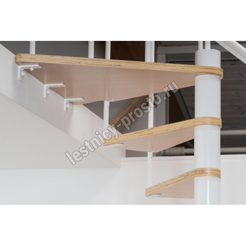 Лестница монтируется как по часовой стрелке, так и против. Возможен монтаж в круглый или квадратный проём.