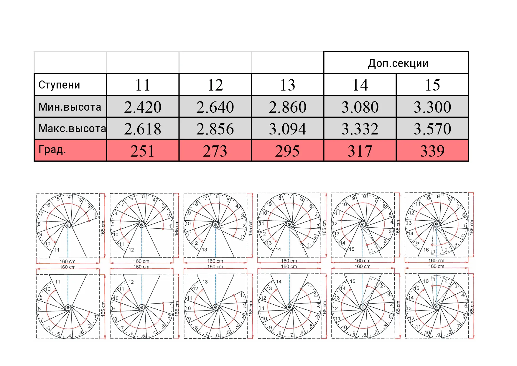Благодаря возможности регулировать высоту шага с помощью пластиковых вставок (входят в базовый комплект), высоту лестницы можно варьировать в пределах от 2860 до 3090 мм. Кроме того, купив дополнительную секцию для этой лестницы, можно поднять высоту до 3320 мм.