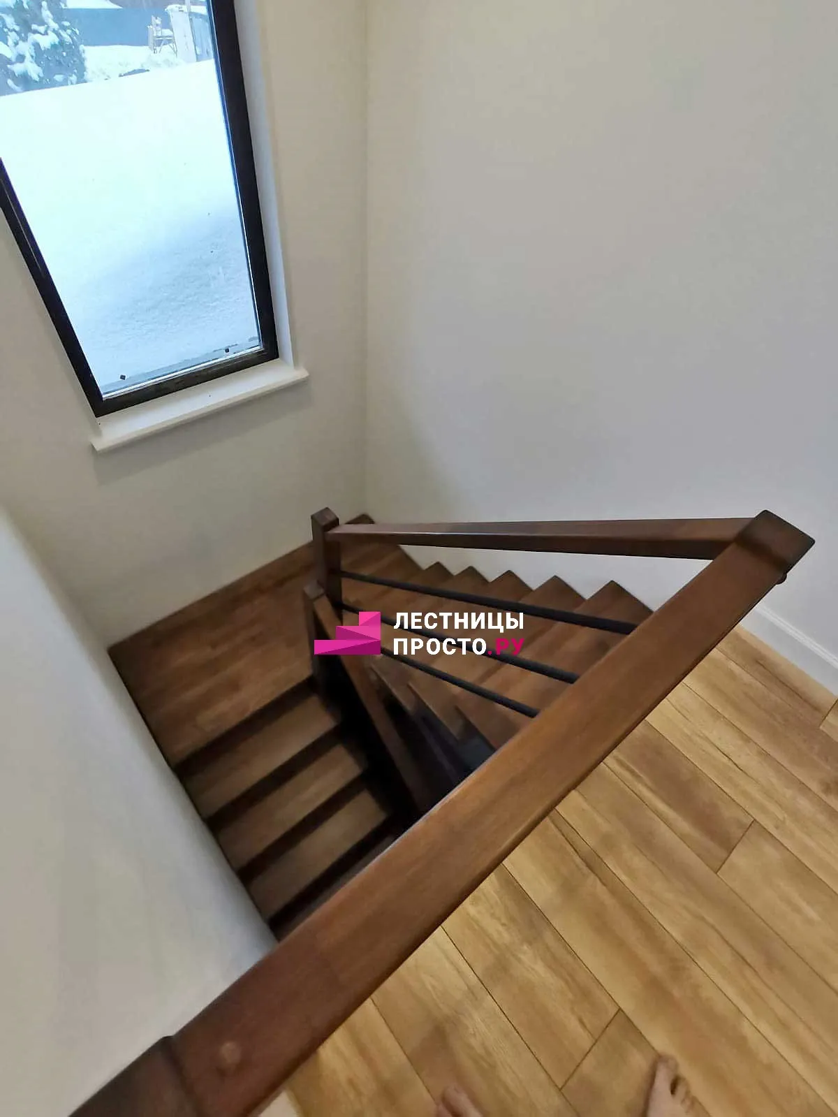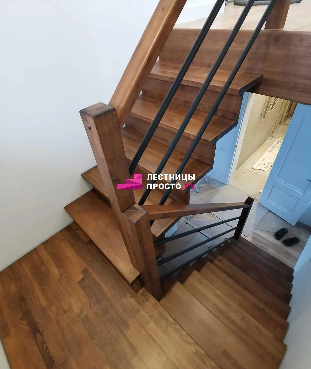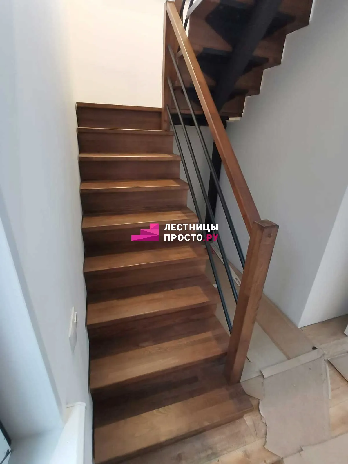 Металлическая лестница с дубовыми ступенями и ограждением LP-1-20